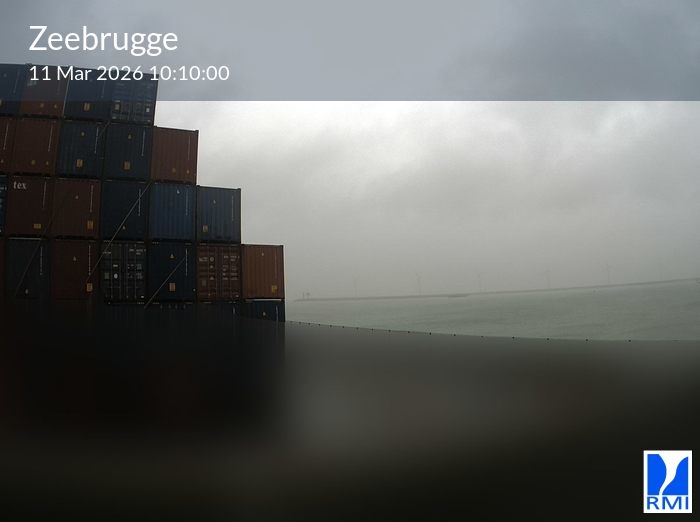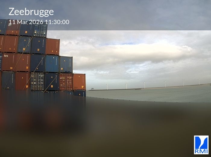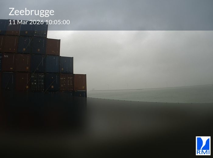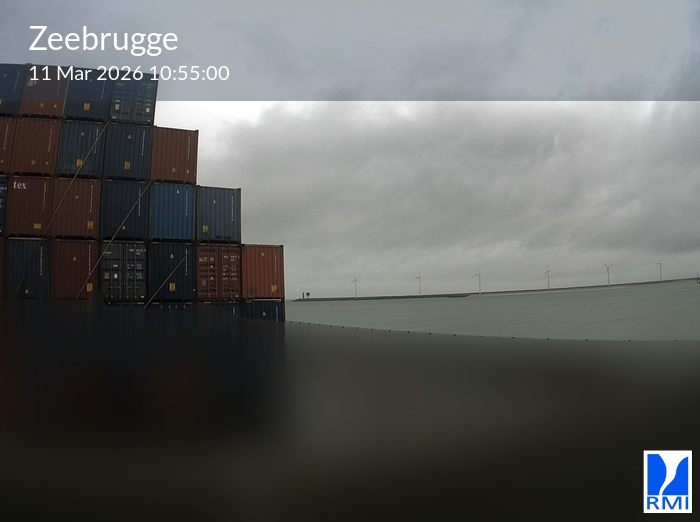 The webcam is situated on the Leopold II dam in the port of Zeebrugge and it is oriented to the North to avoid direct sunlight at noon.