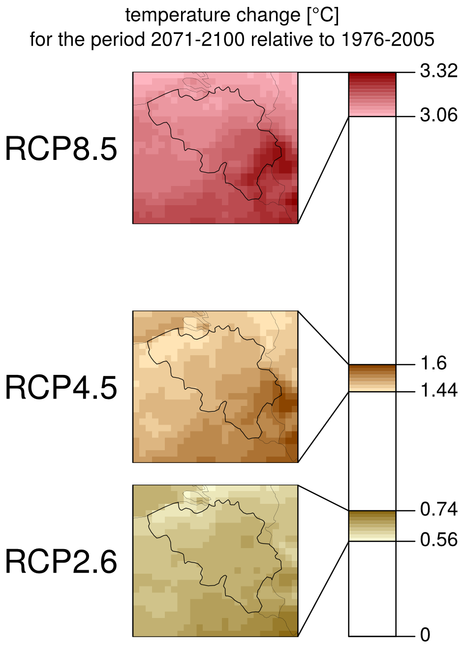 Le modèle climatique régional ALARO-CLIM, basé sur le modèle ALARO à mailles fines (4 km) développé à l’IRM, réalise les premières projections pour la Belgique en décembre 2011. Il utilise le scénario A1B du GIEC.