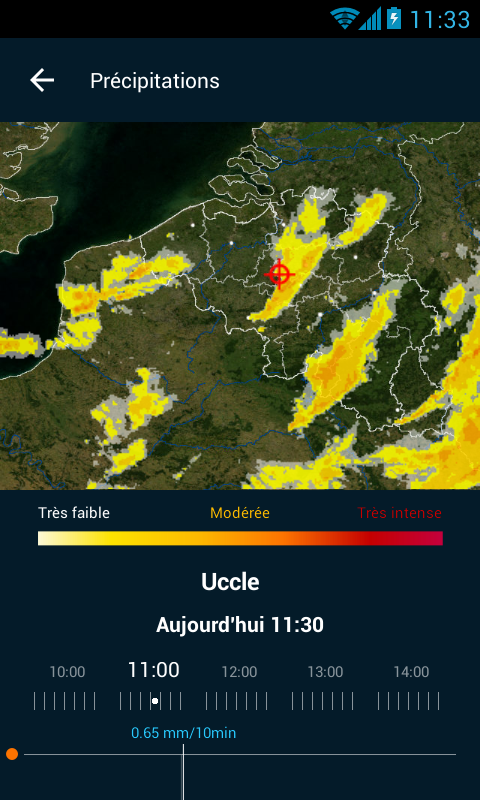 L'application est modulable et facile à utiliser. Vous pouvez consulter les prévisions météorologiques et les observations pour l'endroit où vous vous trouvez ainsi que vos endroits favoris. Cela va des prévisions de précipitations toutes les 10 minutes jusqu'à une tendance générale à 14 jours.