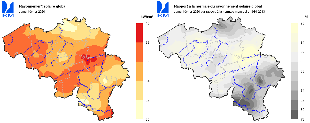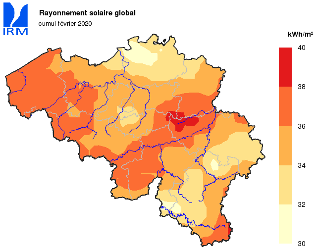 Malgré un nombre très faible de journées pendant lesquelles le soleil n’a jamais été visible (4 jours, normale : 8,3 jours), la durée d’insolation mensuelle n’a atteint que 57h 24min à Uccle (normale : 76h 36min).