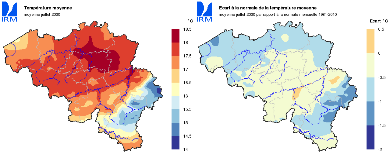 Au final, la température moyenne mensuelle à Uccle fut inférieure à la normale : elle a atteint 17,9°C (normale: 18,4°C). Il faut remonter en 2012 pour trouver un mois de juillet plus froid (17,3°C).