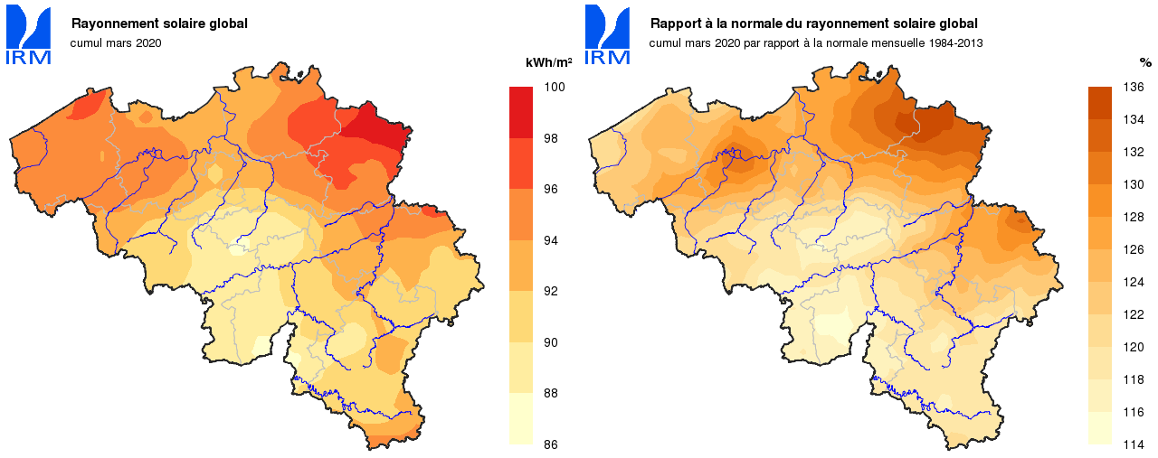 A Uccle, la durée d’insolation a atteint un total mensuel de 161h 55min de soleil (normale : 113h 57min).