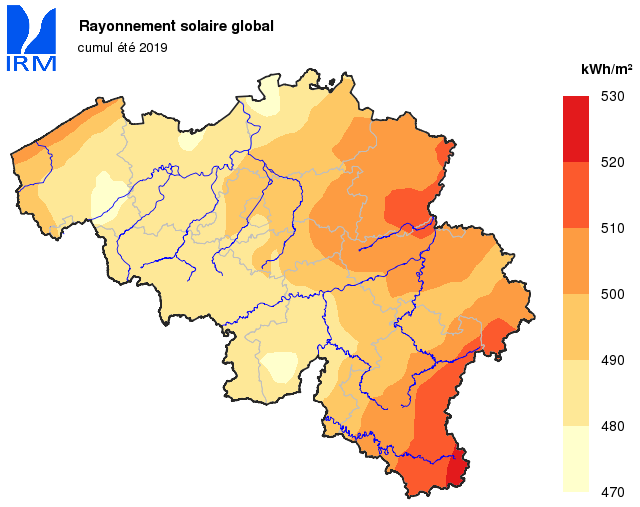 L’été fut globalement très ensoleillé et se classe à Uccle en deuxième position des étés les plus ensoleillés, après 2003 (record : 739h 48min). Cette année, la durée d’insolation estivale y atteignit 714h 38min (normale: 578h 20min).