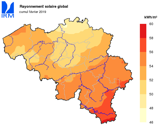 | Rayonnement solaire global | kWh/m² | 49.9 | 36.7 | + | 57.9 | 2018 | 25.4 | 2006 |