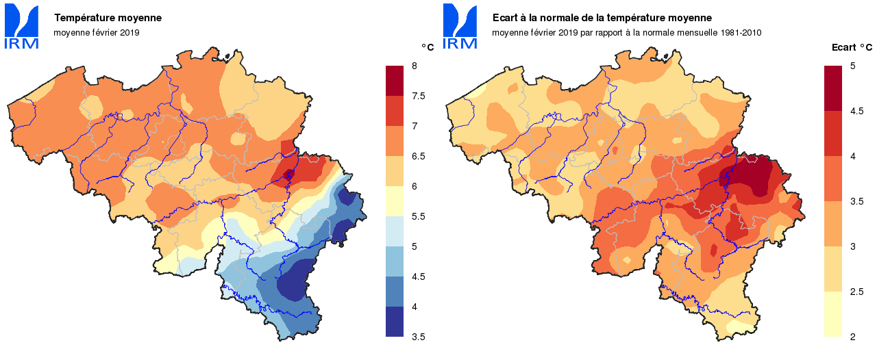 Février 2019 : un mois très doux et ensoleillé à Uccle