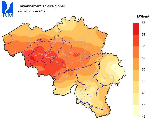 | Rayonnement solaire global | kWh/m² | 52.1 | 55 | 71.3 | 2018 | 33 | 1998 | |