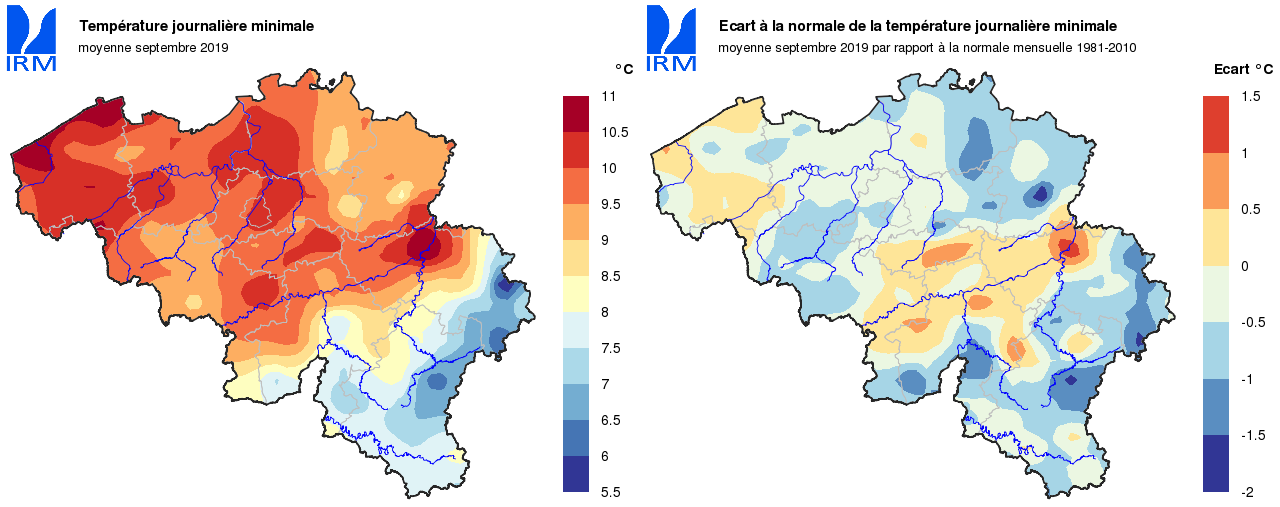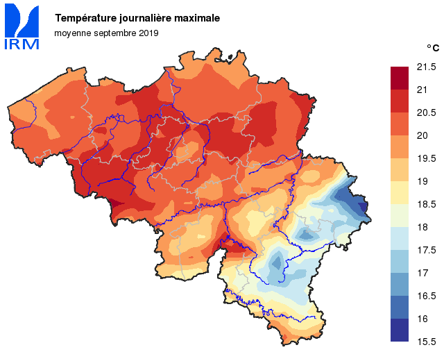 A Uccle, la température moyenne mensuelle a atteint 15,2°C (normale : 14,9°C).