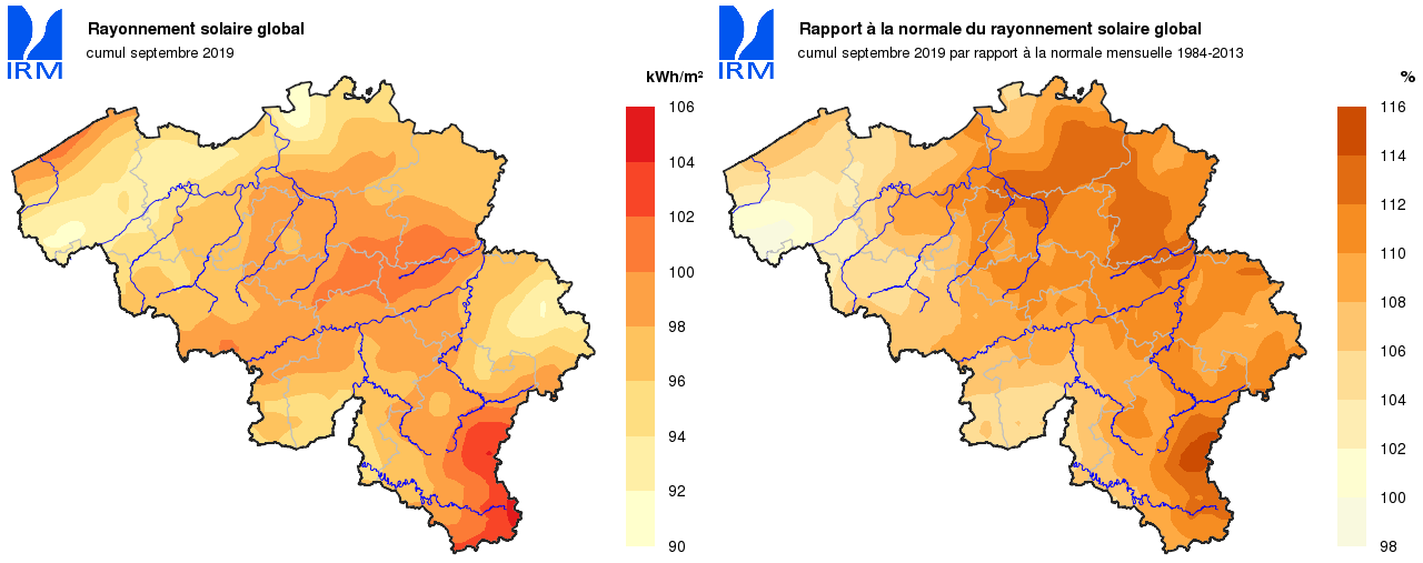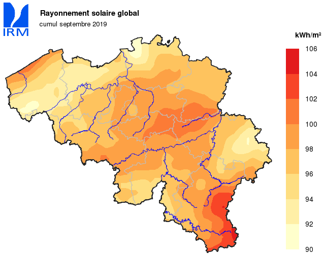 Le mois a débuté de manière assez ensoleillée. La fin du mois fut par contre relativement sombre – à partir du 24, il n’y eut pas beaucoup de soleil à Uccle (seulement 07h 54min) –, mais cela n’a pu empêcher que la durée mensuelle d’insolation soit un peu supérieure à la valeur normale : 152h 00min de soleil (norm.: 143h 04min) relevées à Uccle.