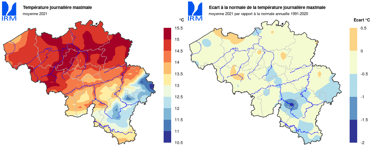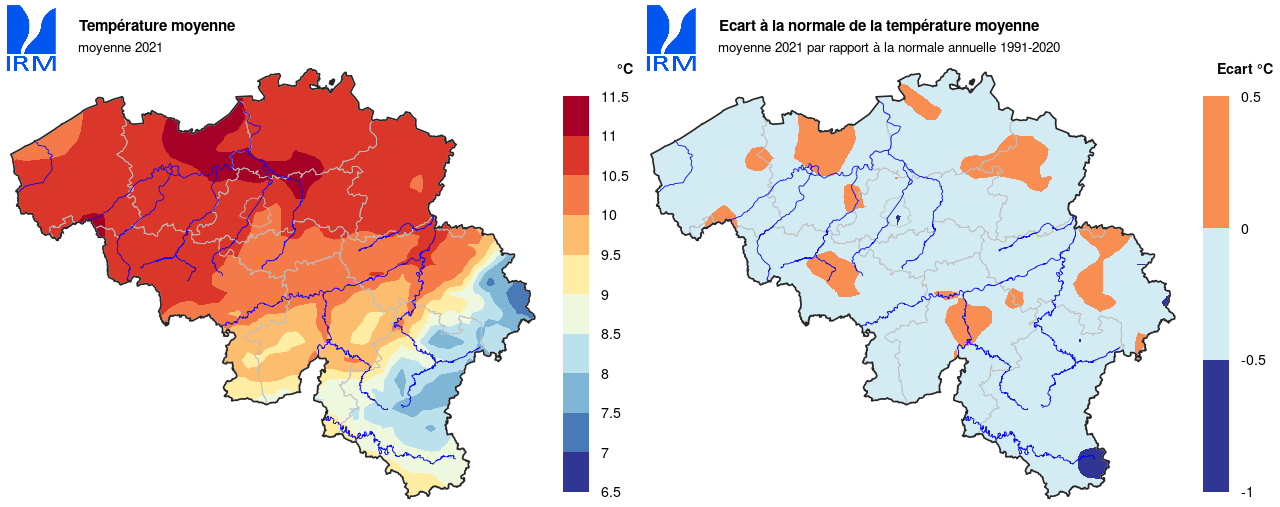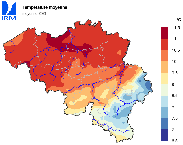 En 2021, la température moyenne à Uccle fut de 10,7°C (normale : 11,0°C).