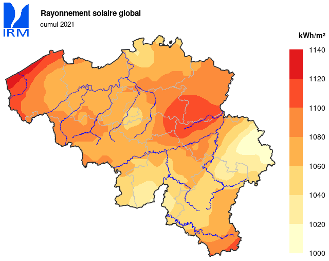 | Rayonnement solaire global | kWh/m² | 1039.8 | 1037.6 | 1172.7 | 2018 | 916.8 | 1998 | |