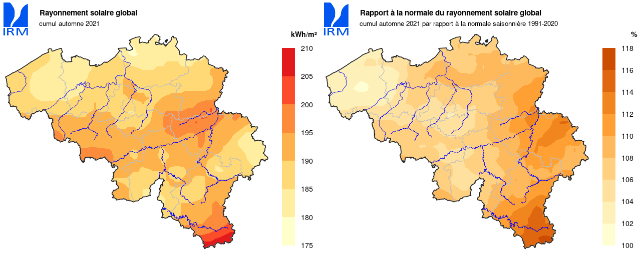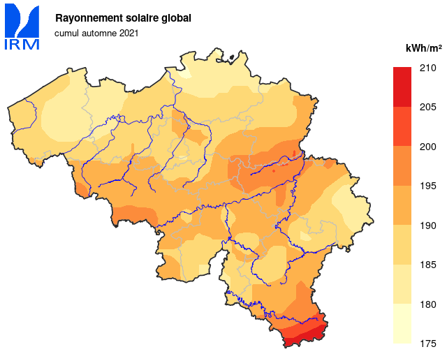 Grâce à un mois de septembre très ensoleillé, l'automne a été globalement plus ensoleillé que la normale. Le soleil a finalement brillé 362h 25min à Uccle (normale : 332h 52min).