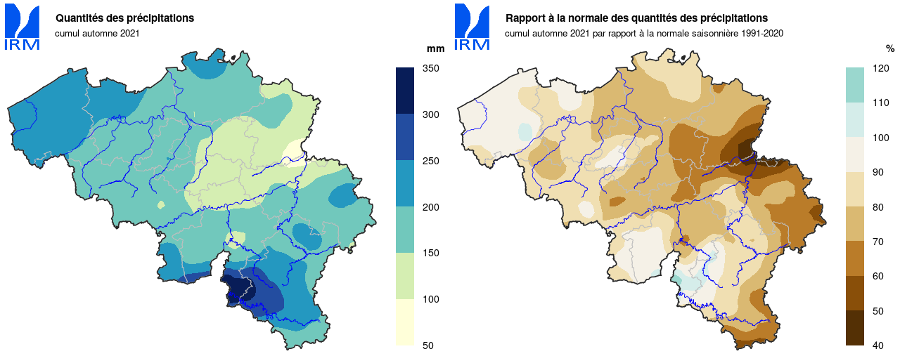En septembre, il n'est tombé que 26,0 mm de précipitations à Uccle (normale : 65,3 mm). Ce mois sec a été suivi par le deuxième mois d'octobre le plus humide depuis 1991. Le mois de novembre a en revanche été plus sec malgré les derniers jours humides.