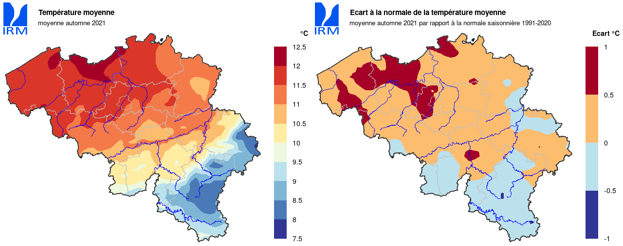 Dans l'ensemble, l'automne a été légèrement plus chaud que la normale avec une température moyenne de 11,5°C (normale : 11,2°C).