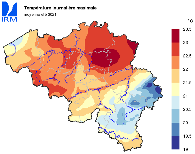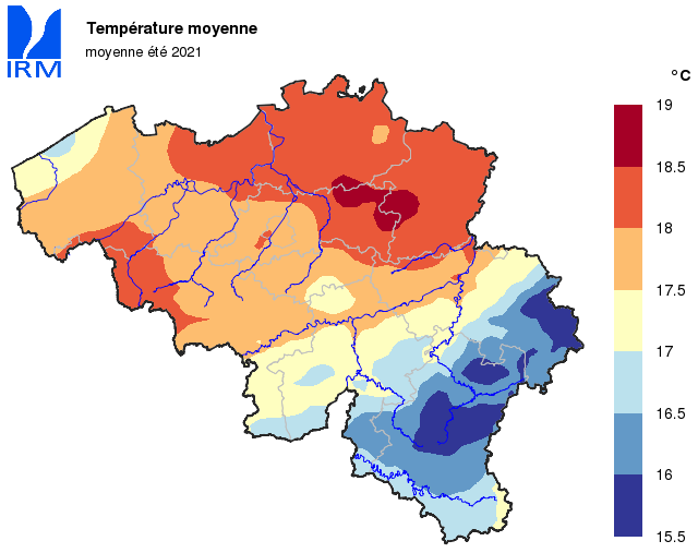 La grande fraîcheur du printemps fut suivie d'un premier mois d'été chaud à Uccle. En juillet et août, les températures ont été inférieures à la normale pendant la majeure partie du temps. En conséquence, la température moyenne de l’été (17,8°C, normale : 17,9°C) et la température maximale moyenne (21,8°C, normale : 22,5°C) ont été inférieures à leurs valeurs normales respectives.