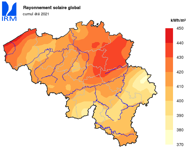 L’été avait pourtant commencé sous le soleil, grâce aux vingt premiers jours du mois de juin. En revanche, la troisième décade de juin a établi un record absolu de déficit d’ensoleillement. Le mois de juin a finalement été légèrement plus ensoleillé que la normale à Uccle, mais la tendance était lancée et le reste de l’été a suivi le même acabit. L'été dans son ensemble a également été beaucoup plus sombre que la normale. Le soleil n'a brillé que durant 513h 21min (normale : 594h 56min).