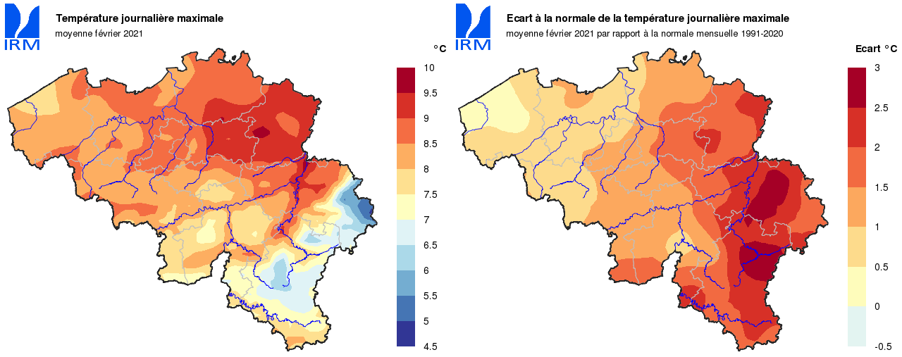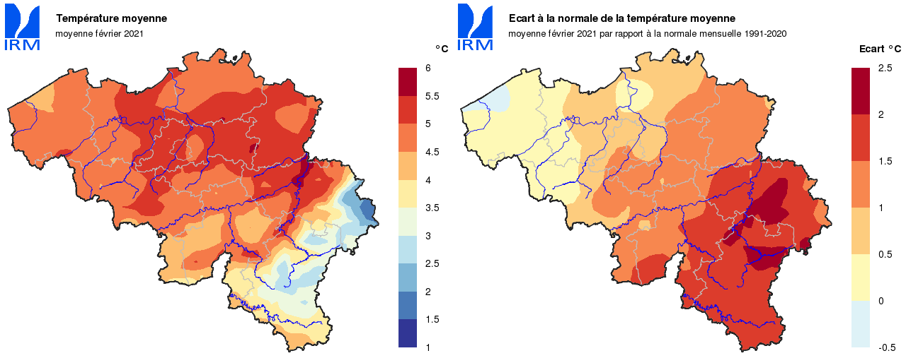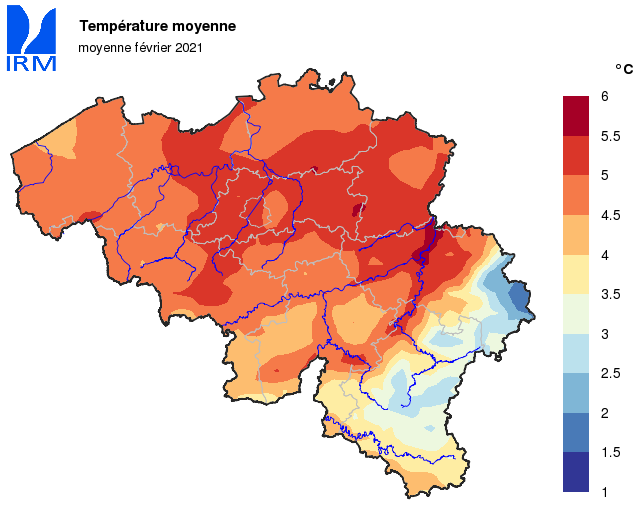 Pendant les six premiers jours de février, les températures à Uccle ont été supérieures à leurs valeurs normales. Ensuite, une période très froide s’est installée, avec des températures parfois largement inférieures aux normales. A partir du 15, les températures ont commencé à augmenter très fortement.