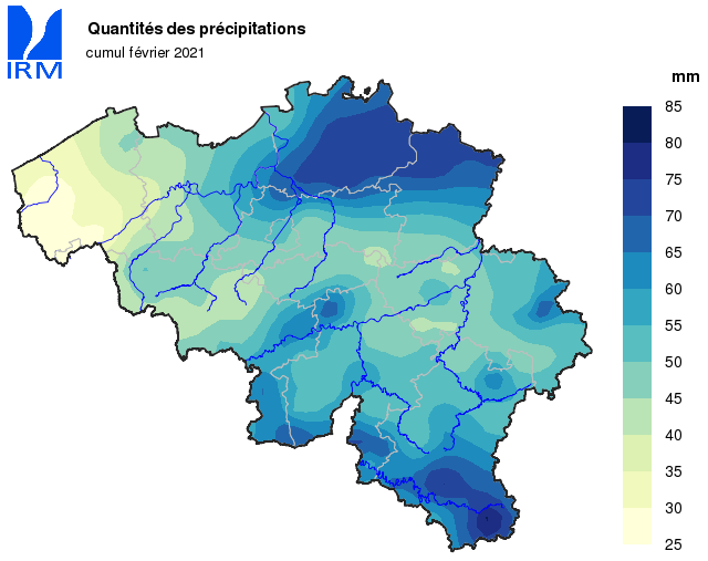 Au cours de la première décade (1-10 février), on a enregistré à Uccle un cumul de précipitations de 39,0 mm (normale : 23,8 mm) en 6 jours. Ensuite, le temps est devenu plus sec.
