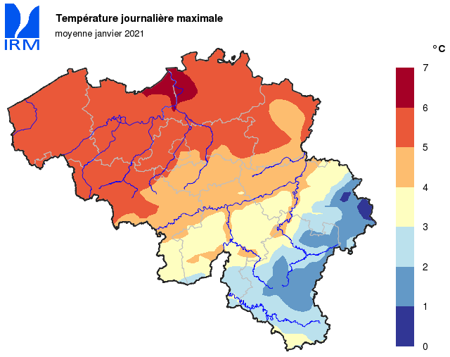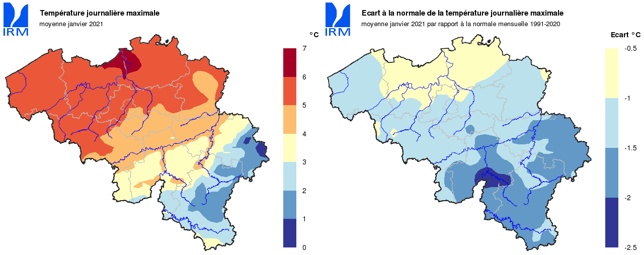 Remarque préliminaire : à partir de ce mois de janvier 2021, la nouvelle période de référence utilisée pour le calcul des normales est la période 1991-2020.