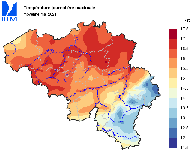 A Uccle, les températures ont varié entre 1,0°C (1 mai) et 25,6°C (9 mai).