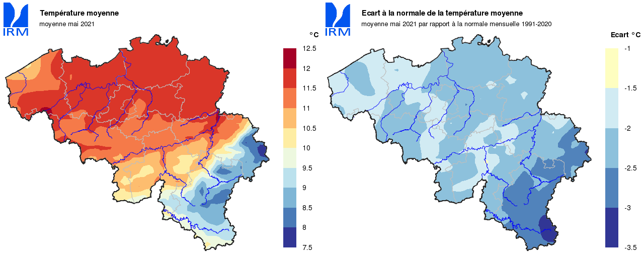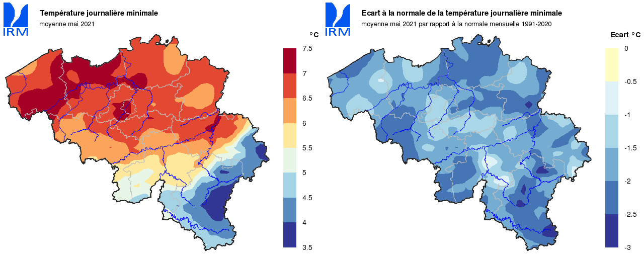 Dans le pays, les précipitations ont encore été en tout ou partiellement constituées de neige pendant 2 jours (les 5 et 7 mai). La couche de neige la plus épaisse a été enregistrée le 5 au Mont-Rigi (Waimes), avec une couche de 2 cm.