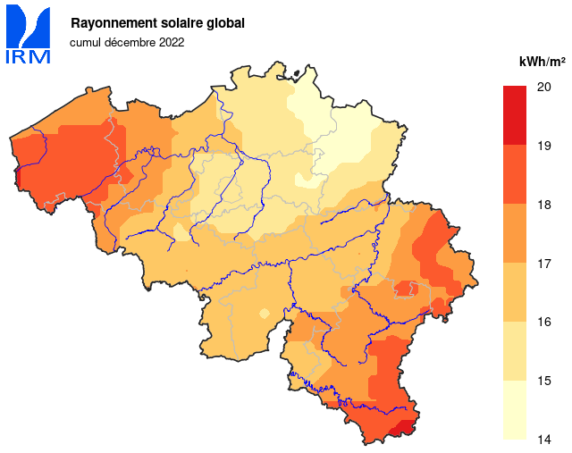 En décembre, on a pu enregistrer 11 jours de gel [min<0°C] (normal : 9,3 jours), mais pas un seul jour d'hiver [max<0°] (normal : 1,7 jours) à Uccle. Pour la période de référence actuelle, c'était déjà le 14ème mois de décembre sans jours d'hiver. Pour la série complète depuis 1892, c'est le 43ème.