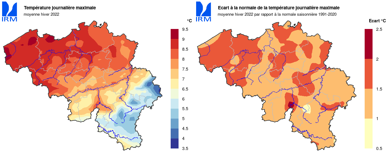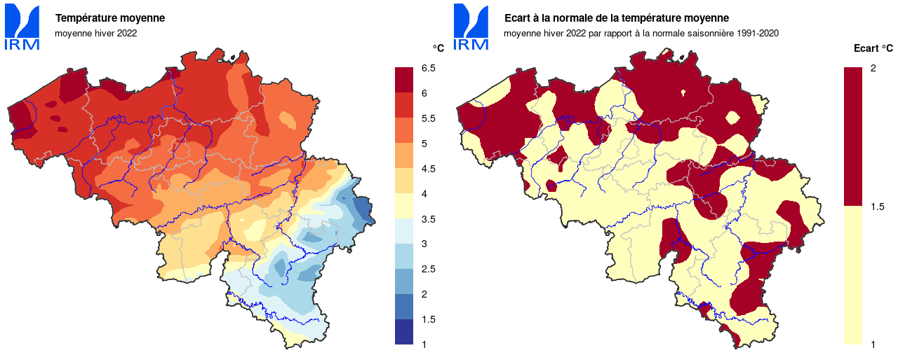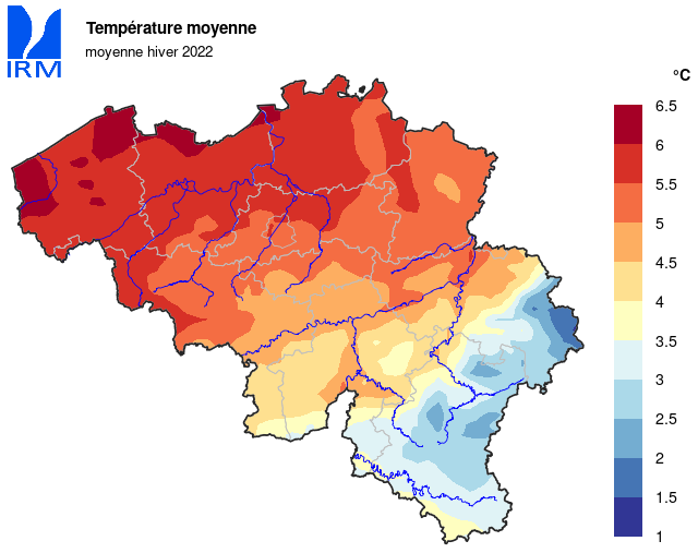 A Uccle, les trois mois de l’hiver ont tous été plus chauds que la moyenne. La période autour du changement d’année fut la plus remarquable.