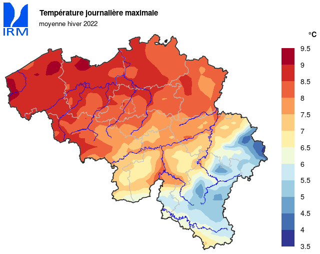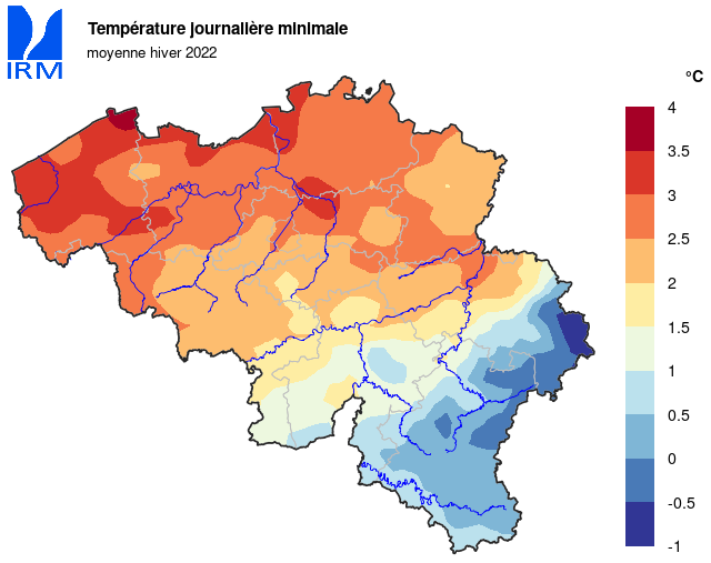 Nous n‘avons enregistré à Uccle que 16 jours de gel [min<0°C] pendant cet hiver (normale : 29,7 jours) et pas une seule journée hivernale [max<0°C] (normale : 5,6 jours), soit deux valeurs remarquables :