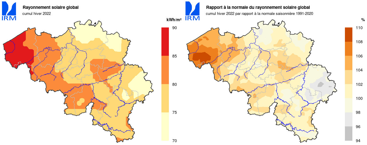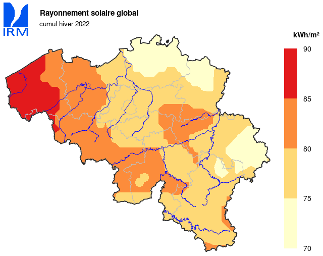 Décembre et janvier ont été des mois sombres. Comme l'année dernière, le soleil a brillé davantage pendant le court mois de février que pendant les deux autres mois d'hiver réunis. Au final, l'hiver dernier a été légèrement plus maussade que la normale à Uccle : 171h 52min contre une valeur normale de 180h 17min.