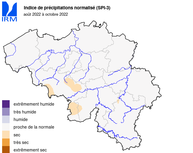 Dans notre pays, les totaux des précipitations les plus faibles sont tombés dans le Pays de Herve (environ 35% de la normale) tandis que le plus important est tombé en Lorraine belge (environ 85% de la normale).