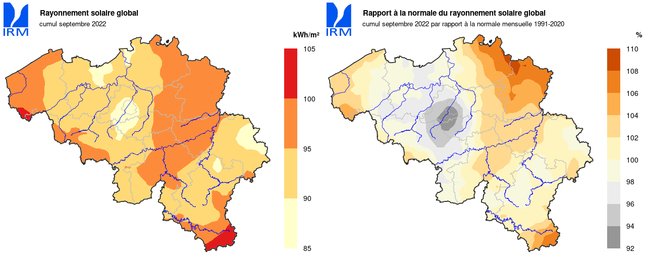 A Uccle, les six premiers jours de septembre ont été tous des jours d’été (maximum plus grand ou égal à 25°C) et le 5, on a même encore enregistré un jour de chaleur (maximum plus grand ou égal à 30°C). C’est la quatrième fois pour la période de référence actuelle que l’on a pu encore enregistrer un jour de chaleur (normale : 0,1 jour). En 2013 et 2016, c’était à chaque fois aussi un jour et en 2020 ce fut même deux jours. Le 12, la température est encore montée jusqu’à 25°C, de telle sorte que nous avons comptabilisé au total 7 jours d’été (normal : 2,3 jours). Seul septembre 2006 en a compté encore plus (9 jours).