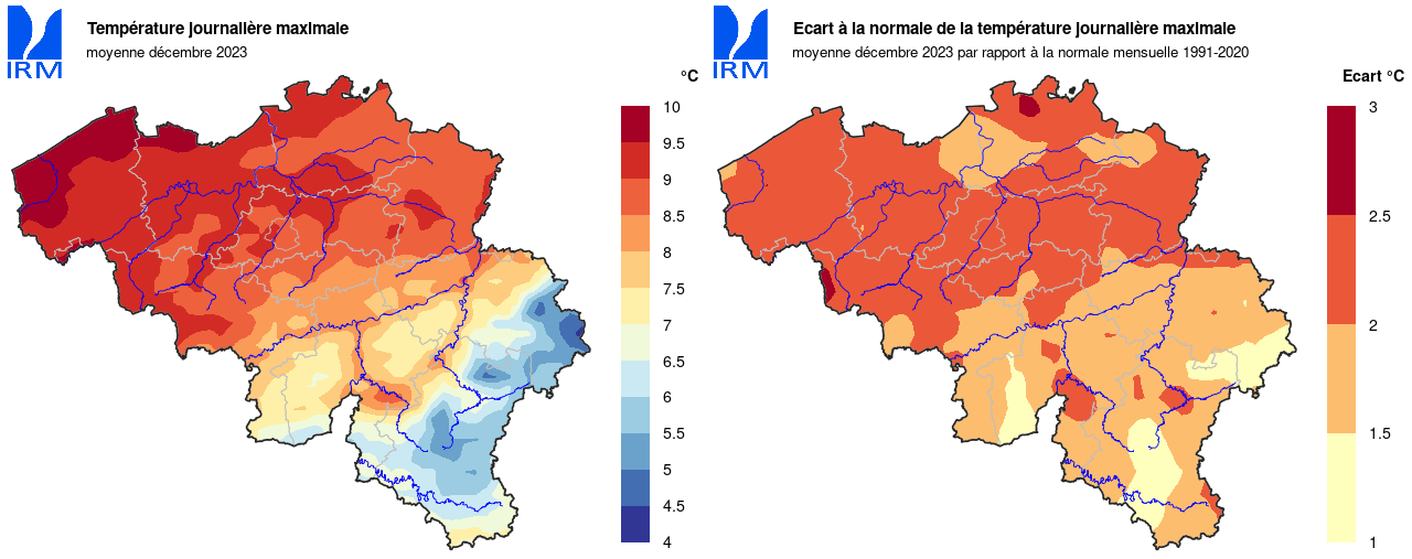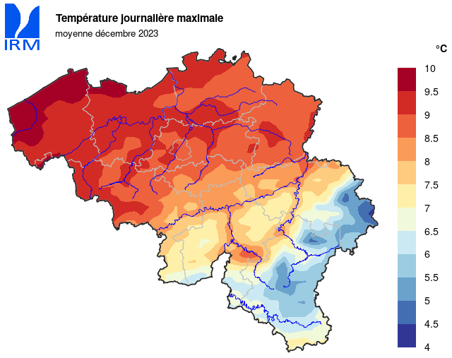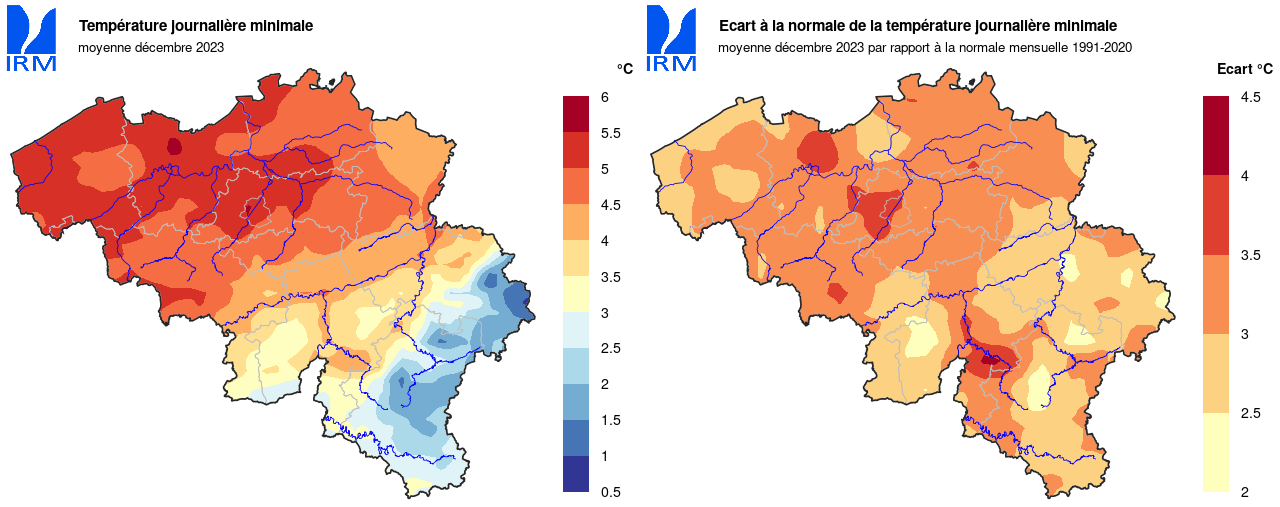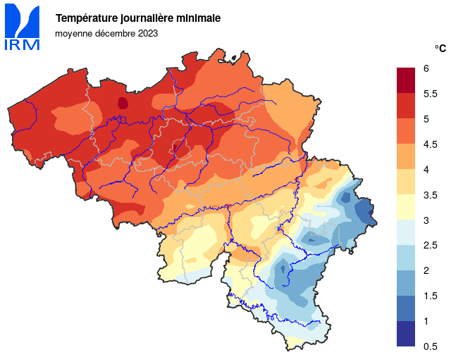 Sur l’ensemble de notre territoire, la température la plus élevée a été enregistrée le 24 décembre à Bassevelde (Assenede), où la température a atteint 13,9°C.