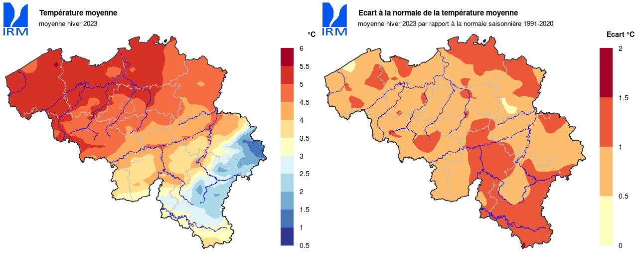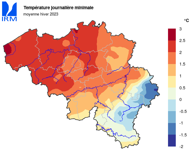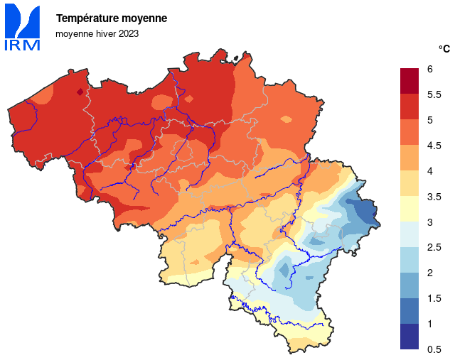 À Uccle, l'hiver a commencé par une longue période de gel. Après une transition rapide, cette période a été suivie d'une période plus chaude qui s'est poursuivie en janvier, suivie d'une nouvelle période froide. En raison de la longue période plus froide de décembre, la température moyenne finale de décembre a été inférieure à la normale pour la première fois depuis 2010. Cependant, les mois de janvier et février ont été nettement plus chauds que la moyenne. Tous ces éléments pris en compte font que l'hiver dans son ensemble a été plus chaud que la moyenne (5,0°C, normale : 4,1°C).