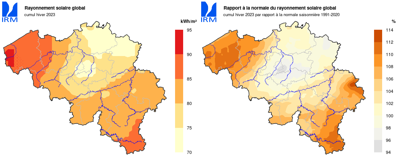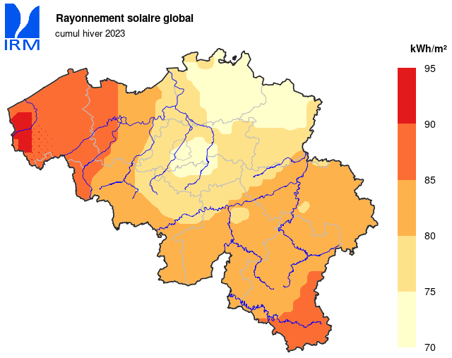 Décembre et janvier ont été des mois sombres, tandis que février a été à peine plus ensoleillé que la normale. Globalement, l'hiver a donc été plus sombre que la normale à Uccle avec 151h 44min contre une valeur normale de 180h 17min.