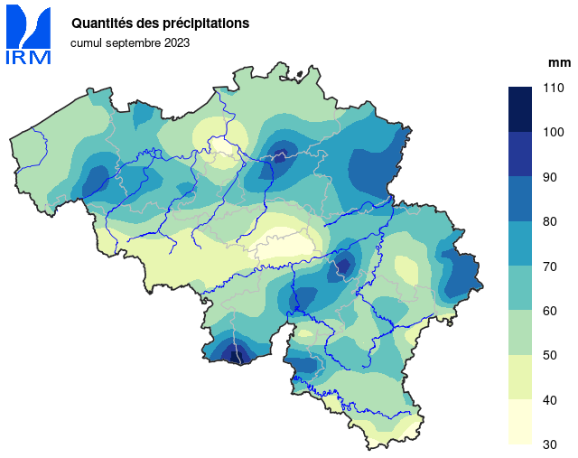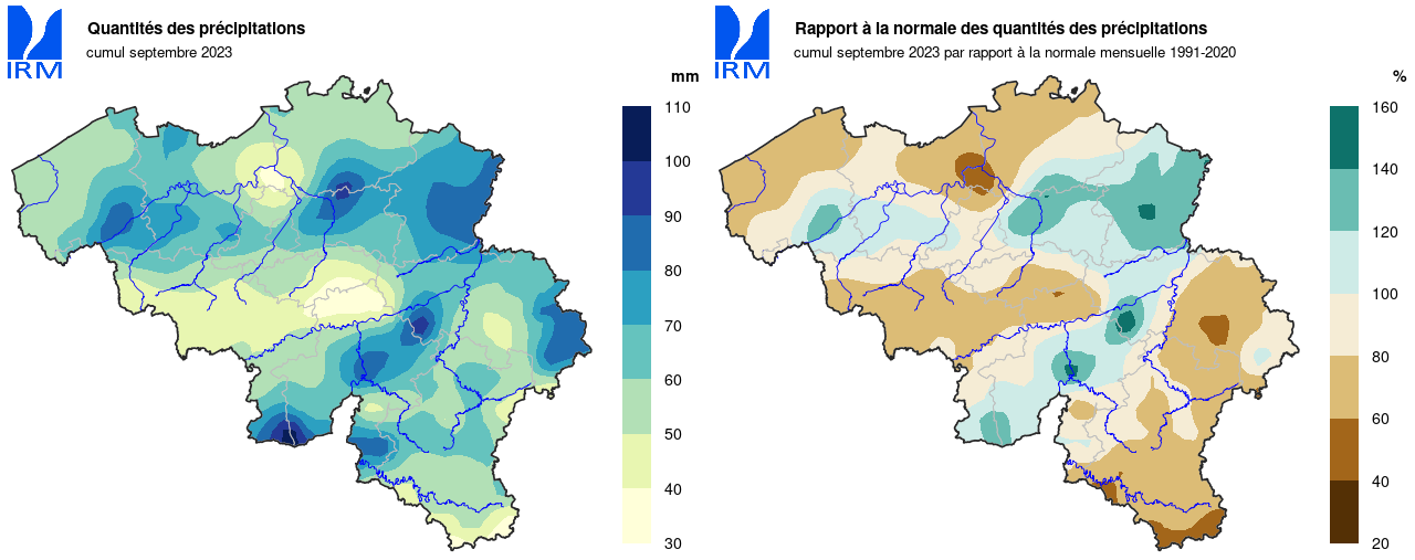 À Uccle, le mois de septembre a été proche de la normale : 64,3 mm de précipitations (normale : 65,3 mm).