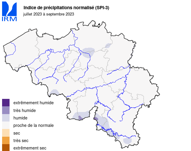 Sur l’ensemble de notre territoire, les précipitations les plus faibles ont été enregistrées sur la Lorraine belge (environ 60 % de la normale) tandis que les précipitations les plus importantes sont tombées dans la région de la Campine, de l’Hesbaye et de l’Entre-Sambre-et-Meuse (environ 100 % de la normale).