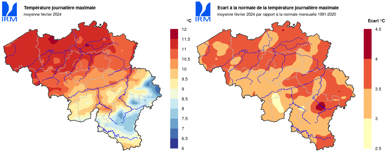 Fait remarquable : février a été le dernier mois avec un record absolu pour la température moyenne avant la période de référence actuelle (1991-2020) et l'avant-dernier mois avec un record absolu pour ce paramètre au cours du 20ème siècle. Novembre 1994 reste le mois de novembre le plus chaud depuis 1833. Attendons de voir quand ce record sera battu…