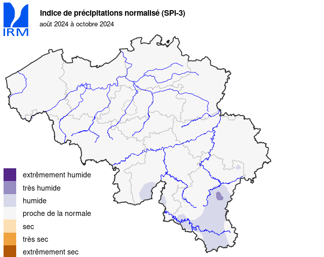 Sur l’ensemble de notre territoire, les précipitations les plus faibles sont tombées à la côte (environ 60 % de la quantité normale), tandis que les précipitations les plus importantes sont tombées dans la région de l’entre Sambre et Meuse (environ 140 % de la quantité normale).