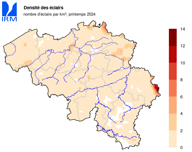 Nous avons enregistré, au printemps dernier, 36 jours d'orage dans notre pays (normale : 24,8 jours). Il s'agit d'un nouveau record pour la période de référence actuelle (précédent record : 34 jours en 1998 et 2000). Sur l'ensemble des observations depuis 1928, ce printemps se classe en troisième position, loin derrière le record absolu de 1983 (43 jours).