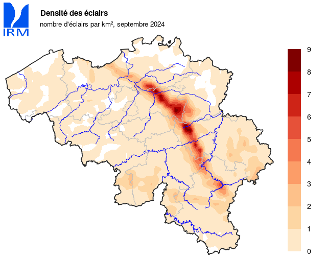 Avec cette quantité, septembre est le 12e mois consécutif à Uccle avec des précipitations supérieures à la normale. Pour rappel, le précédent record absolu datait de 1905 (mesures depuis 1833). De mars à octobre 1905, on a enregistré 8 mois consécutifs avec des précipitations supérieures à la normale à Uccle.