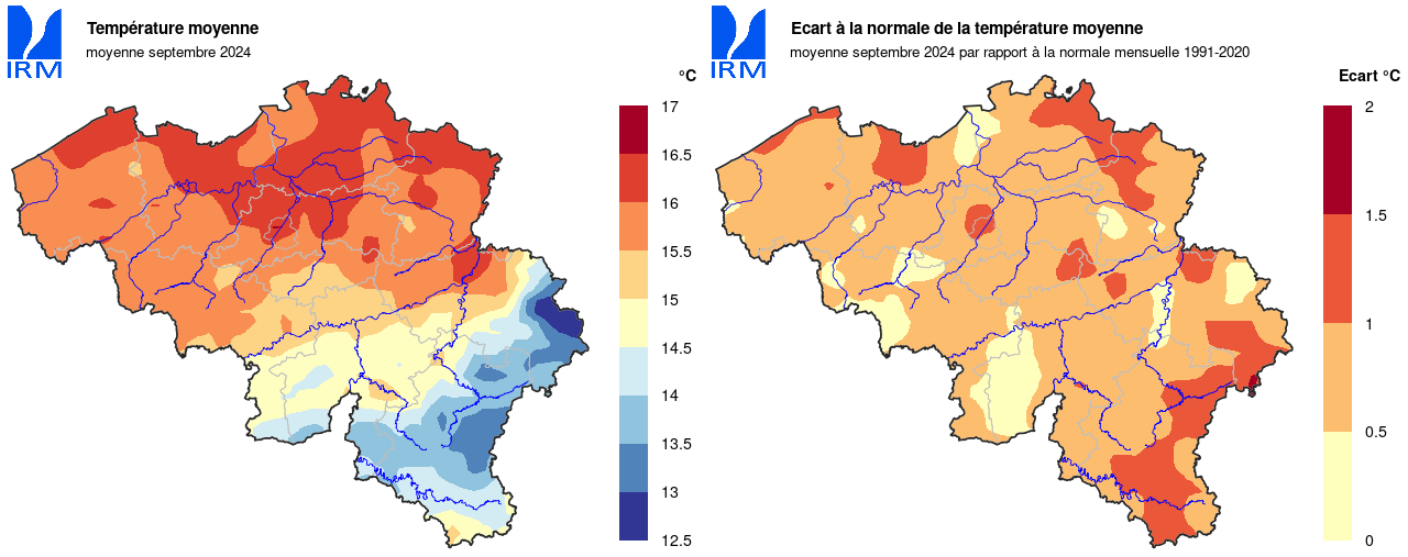 Le mois de septembre a été marqué par de fortes variations de température. A Uccle, du 1er au 8 et du 17 au 26, les températures ont parfois été bien supérieures à leurs normales respectives. Le reste du temps, elles étaient parfois bien en dessous. En conséquence, la température moyenne finale est à peine supérieure à la normale mensuelle : 15,4°C (normale : 15,2°C).