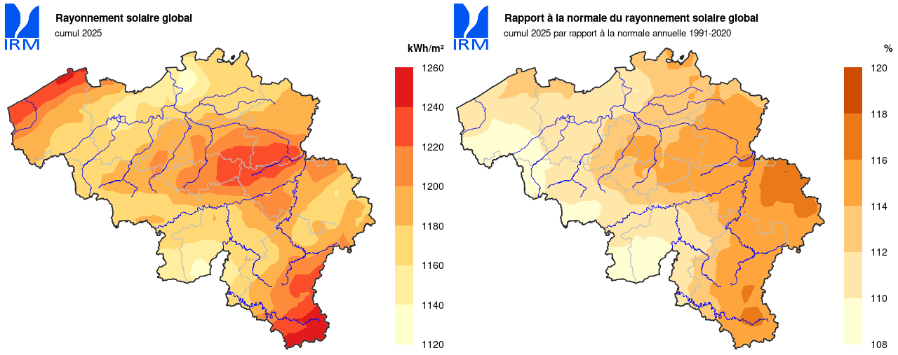 Selon l'Organisation météorologique mondiale, 2025 sera la deuxième ou troisième année la plus chaude à l'échelle planétaire (observations depuis les années 1860). À Uccle, 2025 a été, avec 2014, la quatrième année la plus chaude depuis le début des observations en 1833.
