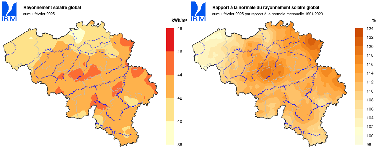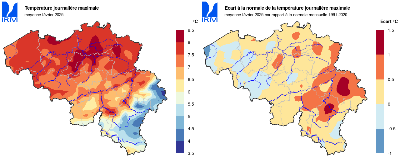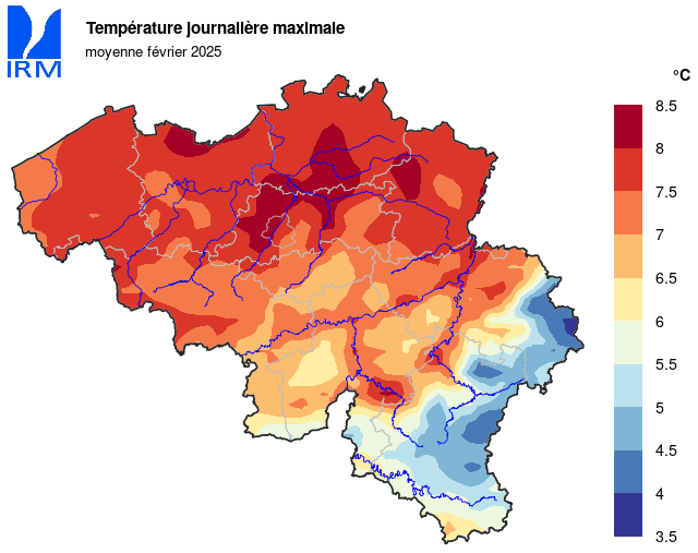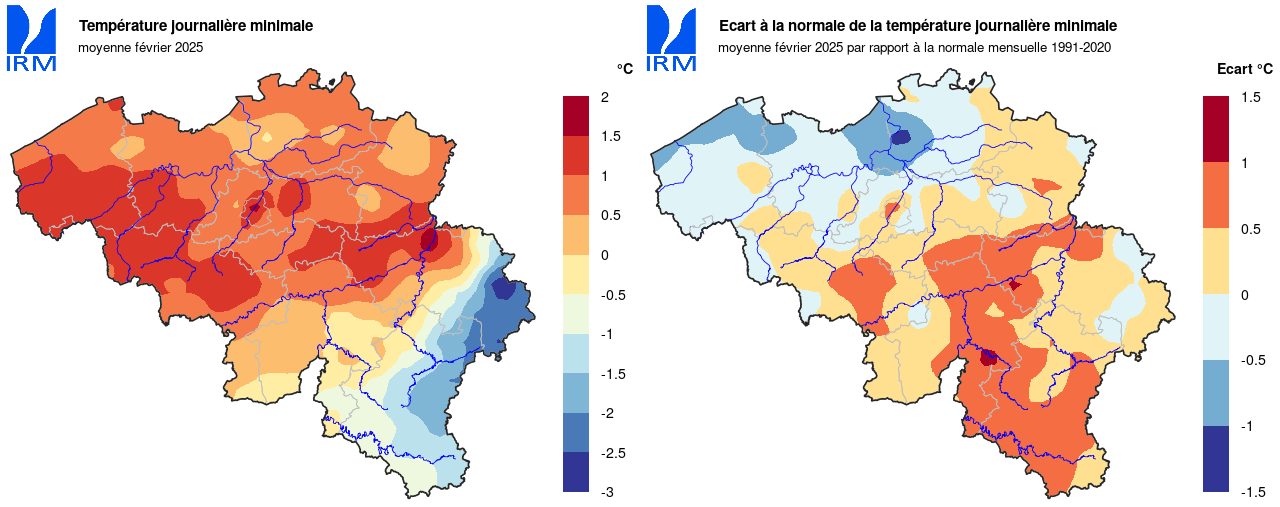 Dans notre pays, la température minimale la plus basse a été enregistrée le 18 février à Elsenborn (Bütgenbach) avec -11,7°C. La température la plus élevée a été enregistrée le 21 février à Kapelle-op-den-Bos avec 19,8°C.