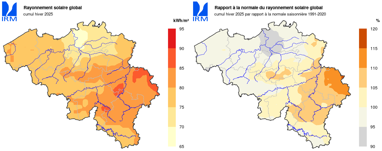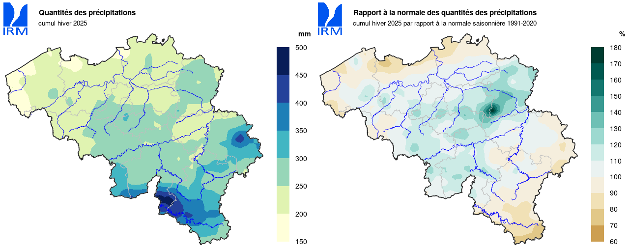 Après les deux premiers mois d'hiver, il était déjà clair que cet hiver à Uccle serait la huitième saison consécutive avec plus de précipitations que la moyenne. Le record absolu datant d'il y a près d'un siècle (printemps 1924 - hiver 1926) est ainsi égalé. Plus d'explications sont disponibles dans le communiqué de presse suivant : record-absolu-des-saisons-humides-consecutives-a-uccle.