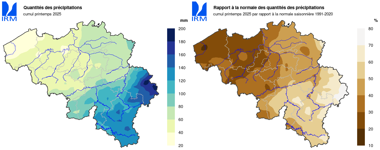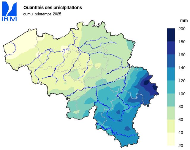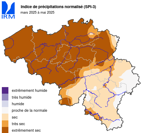 Ce printemps sec a mis fin à une longue série de saisons consécutives avec des précipitations supérieures à la moyenne. Le communiqué de presse suivant, daté du 10 février 2025, fournit de plus amples explications : record-absolu-de-deux-saisons-humides-consecutives-a-uccle .