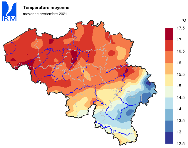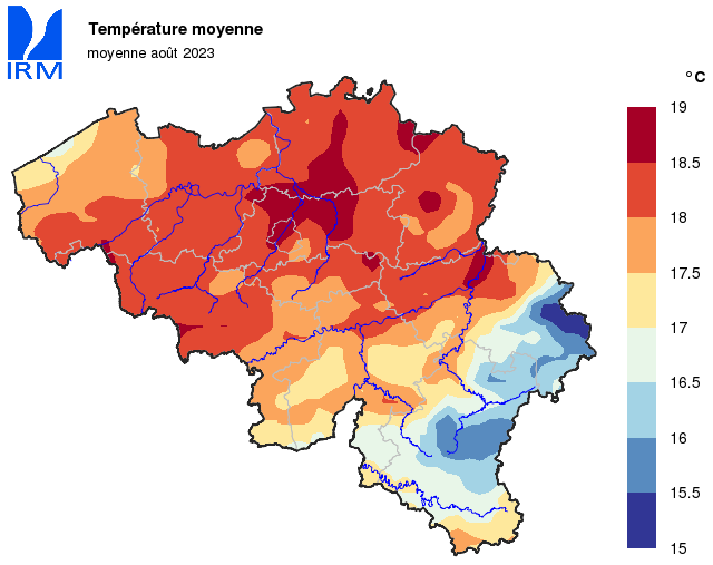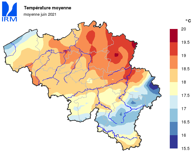 Les cartes climatologiques illustrent la répartition géographique des valeurs mensuelles, saisonnières et annuelles de la température moyenne (depuis 1981), des quantités de précipitations (depuis 1981) et du rayonnement solaire (depuis 1984). Ces variables sont également représentées en terme d'anomalie, c'est à dire selon la différence (pour la température) ou le rapport (pour les précipitations et le rayonnement solaire) entre les valeurs sélectionnées et la normale correspondante dont la période de référence est 1981-2010 (ou 1991-2020 à partir de 2021) pour la température et les précipitations et 1984-2013 (ou 1991-2020 à partir de 2021) pour le rayonnement solaire. La répartition géographique de ces normales est reprise dans l'atlas climatique.