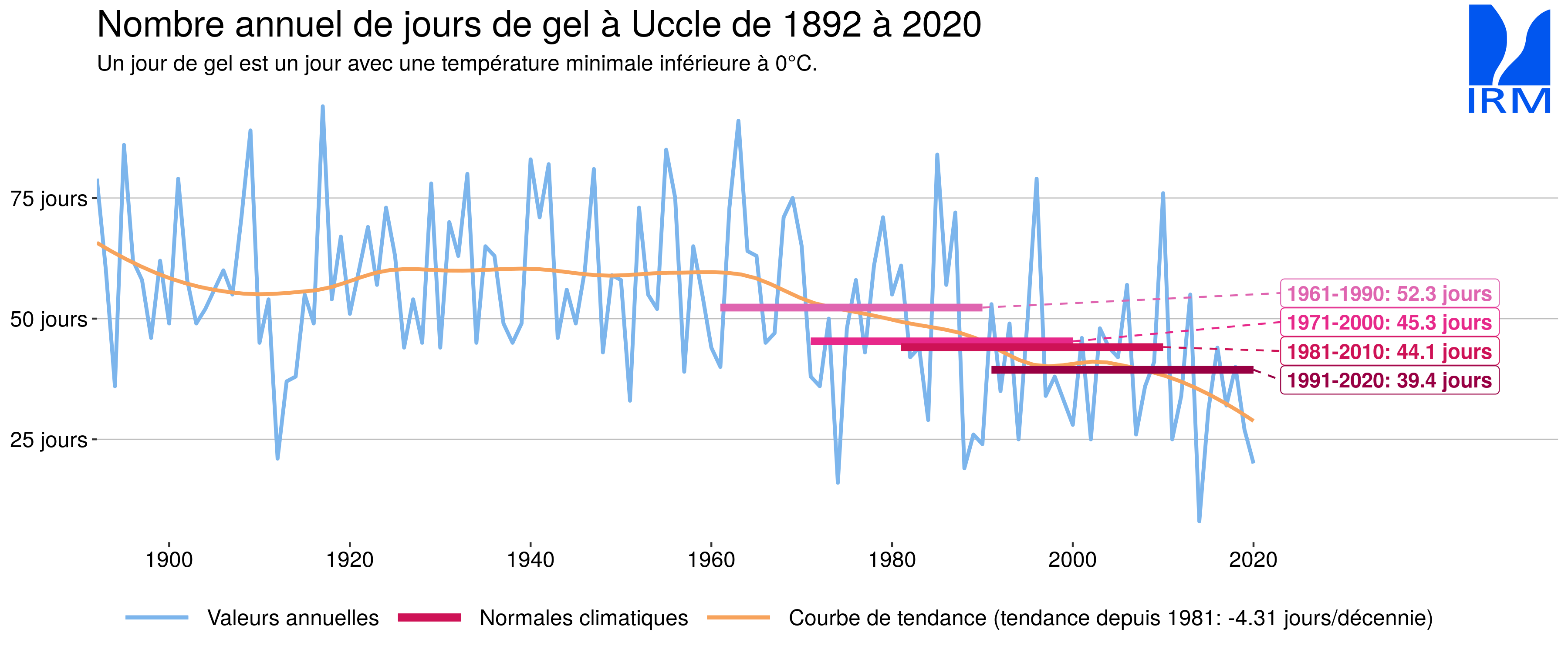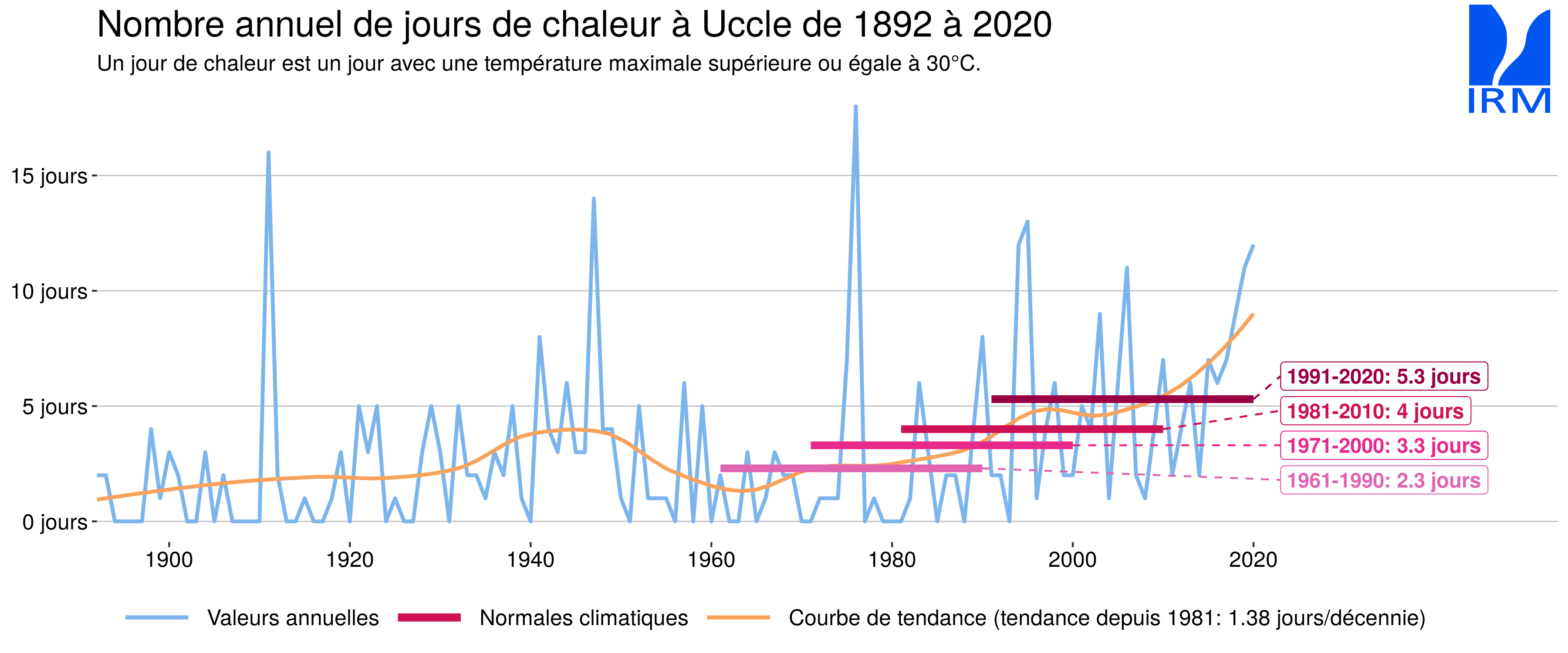 Outre les tendances à long terme, ces valeurs normales sont utiles pour illustrer à quel point le climat en Belgique change.