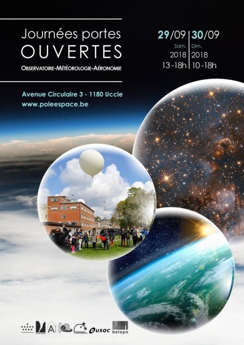 Le samedi 29 et le dimanche 30 septembre 2018, le Pôle Espace, comprenant l’IRM, l'Observatoire royal de Belgique et l’Institut royal d’Aéronomie spatiale de Belgique, ouvrira ses portes au grand public sur le plateau d’Uccle.