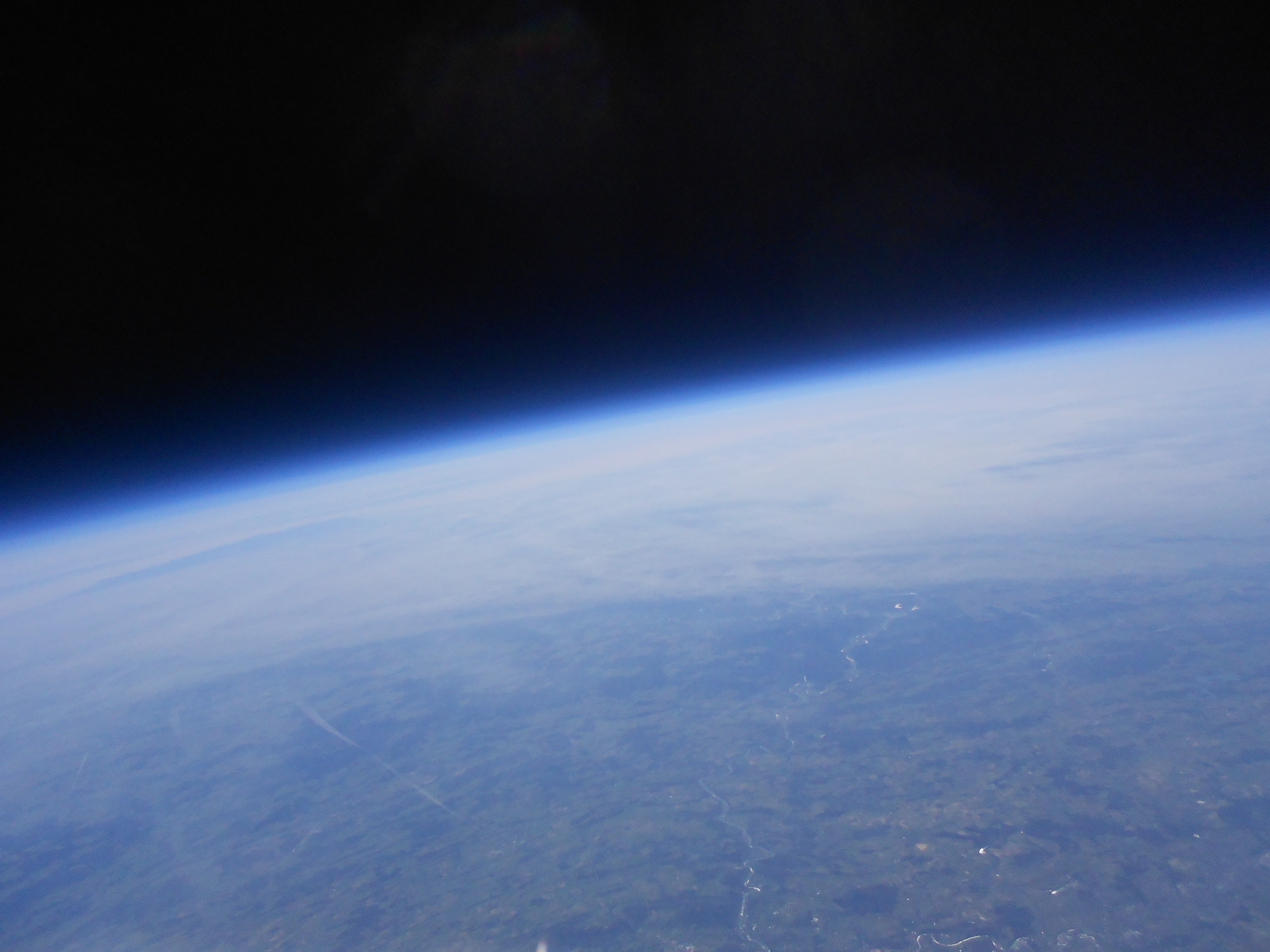 Nous avons l'impression que l'espace est très loin de nous, mais ce n'est pas tout-à-fait juste. La station spatiale internationale (ISS) est en orbite autour de la terre à environ 400 km d'altitude, alors que l'espace commence à une altitude de 100 km. Un ballon météorologique peut atteindre une altitude de 30 km. Cela ne semble pas beaucoup, mais c'est déjà à la frontière de l'espace : à cette altitude, 99% de l'atmosphère est en dessous de nous, le ciel est noir, la terre est bleue et la forme sphérique de la terre est déjà visible !