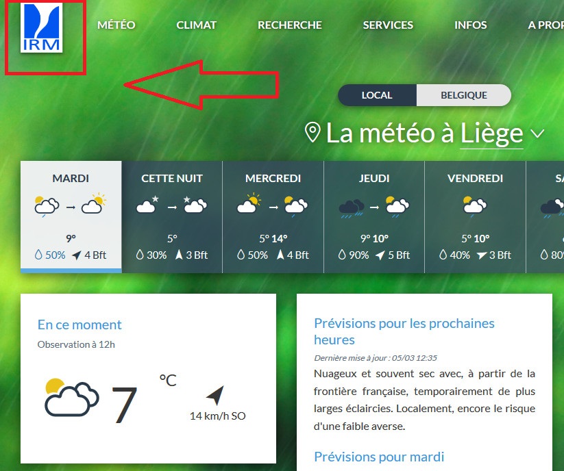 En cliquant sur le logo de l'IRM qui se trouve en haut à gauche de chaque page du site web.
