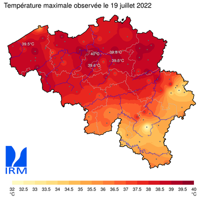 Ces derniers jours, notre pays a été victime de températures extrêmement élevées. Une zone de haute pression située au-dessus de l'Europe centrale a assuré un temps stable et sec sur nos régions. De l'air de plus en plus chaud a atteint notre pays hier et avant-hier, pour culminer avec de l'air extrêmement chaud en provenance de la péninsule ibérique pour cette journée du 19 juillet 2022.